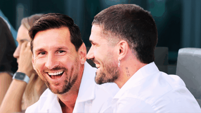 Acompañado por sus hijos Francesca y Bautista, Rodrigo De Paul se ubicó en el palco de estadio de Inter Miami, donde se sentó junto a su amigo y compañero de club, Messi.